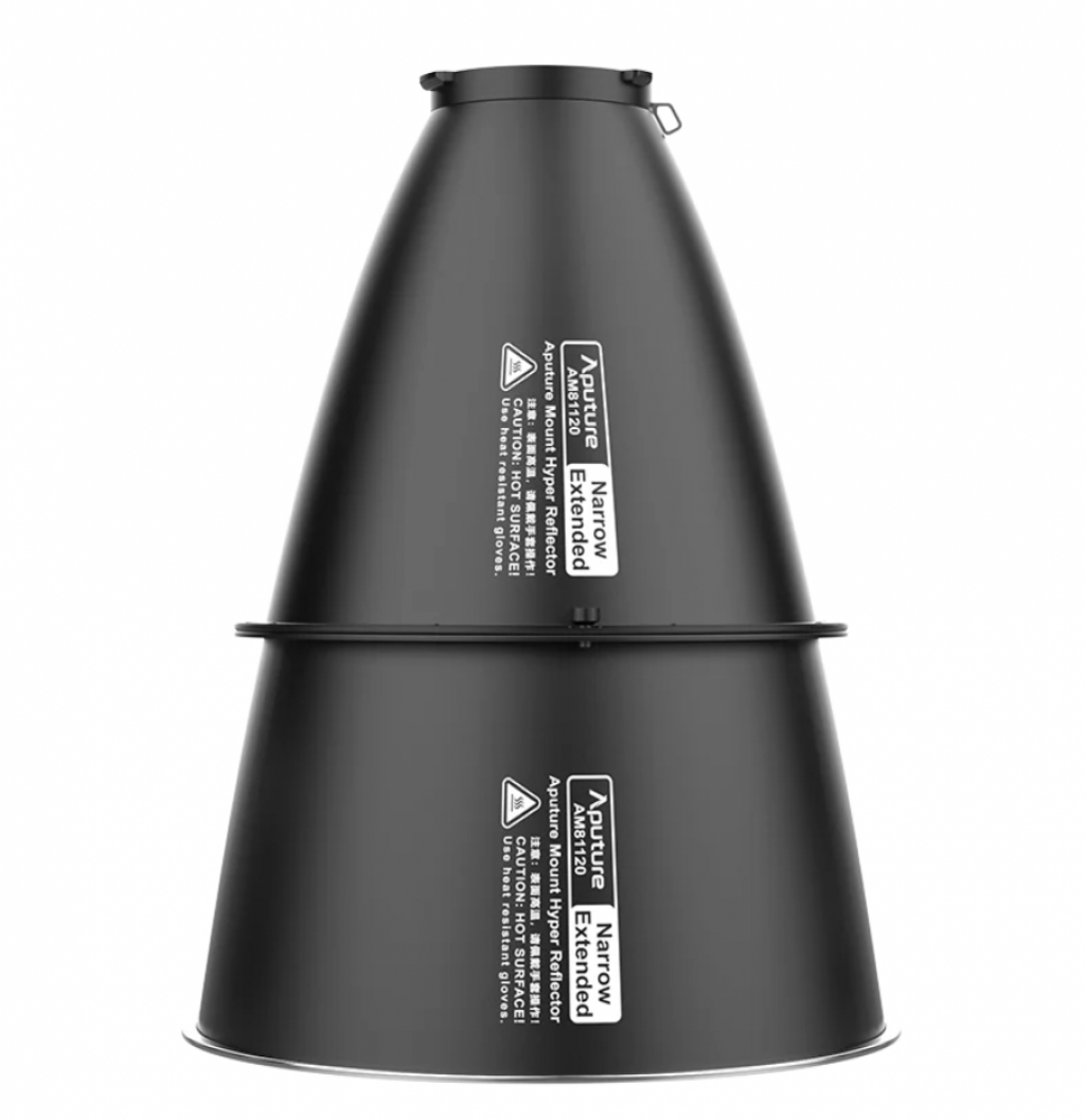 The Aputure STORM XT52 Narrow Reflector Kit is a 25º narrow reflector or intensifier tuned for optimal performance with the STORM XT52, producing a even beam with no color fringing. The included extension tube converts the 25º reflector to a 20º degree hyper-narrow reflector.